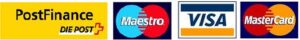 Maestro, Postcard, TWINT und alle gängigen Kreditkarten sind bei uns willkommen.