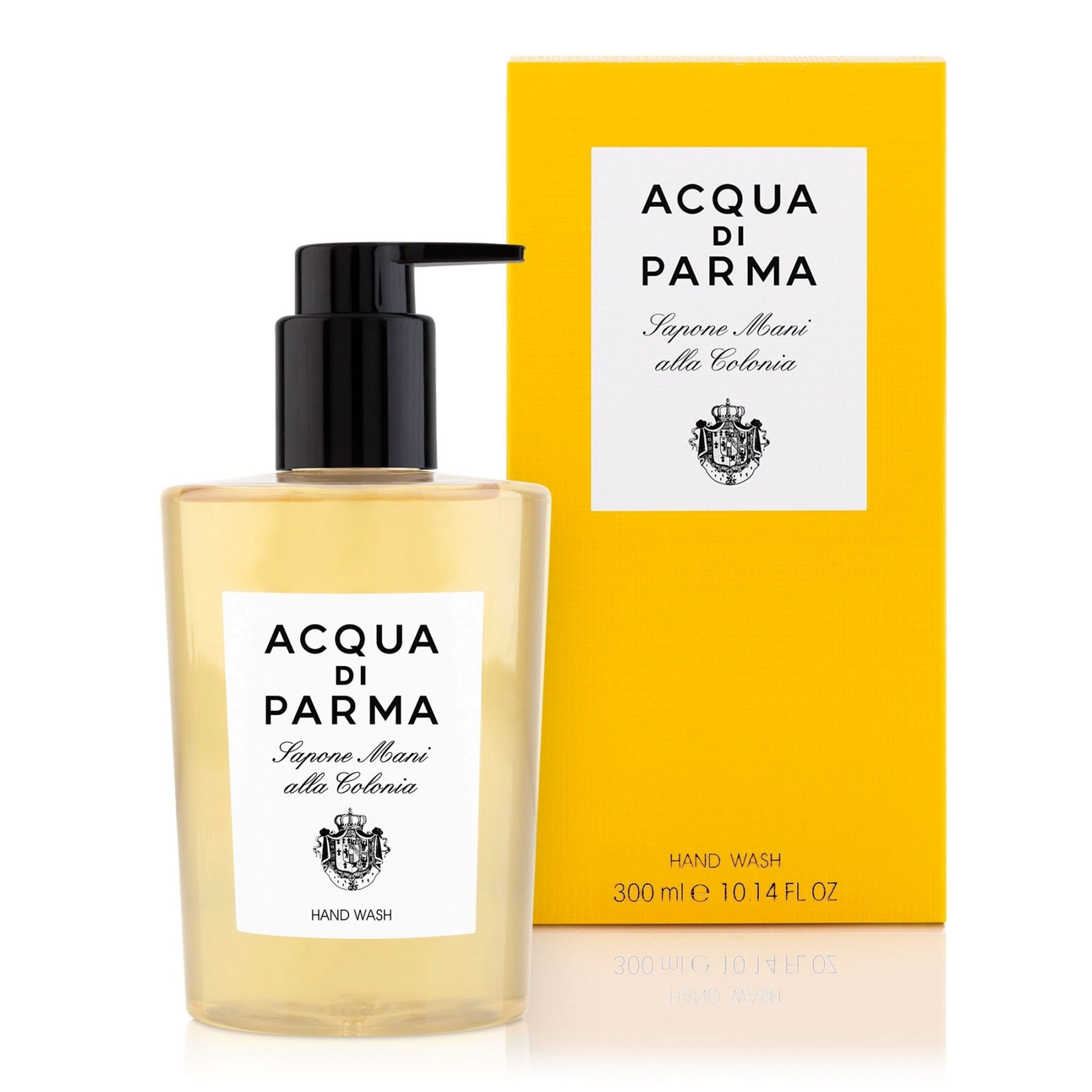 Im praktischen Spender in unserer ikonisch gelben Verpackung. Entdecken Sie die frischen, sonnigen Noten von Colonia in einer Seife. Für diejenigen, die praktische Flüssigseifen bevorzugen, ist diese Handseife im Spender angereichert mit wertvollen, aktiven Inhaltsstoffen – mit tief reinigendem Pathenol und erfrischendem und schützendem Aloe-Extrakt. Die Formulierung enthält ausschliesslich natürliche Tenside, die für eine tiefe Reinigung sorgen und gleichzeitig den hydrolipiden Film der Haut schützen. Bei Kontakt mit Wasser, wird die Seife zu einem reichhaltigen, cremigen Schaum, der einen angenehmen Duft auf der Haut hinterlässt. Der Spender ist erhältlich in einer eleganten, gelben Acqua di Parma Verpackung.