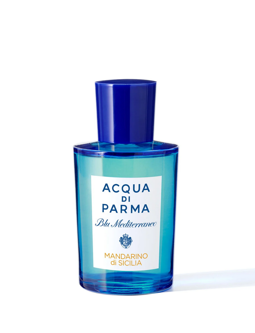 Typisch für Acqua di Parma spielt der Flakon von Mandarino di Sicilia mit Stilelementen des Art déco. Das Glas des Flakons ist von tiefblauer Farbe – rein, edel und dickwandig erinnert es an den schimmernden Glanz des Meeres.